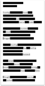 Blacking out parts of the poem until it resembles the redacted version of the Mueller report is a great way to generate discussion. The couplet which follows the four quatrains might suggest, for example, a profound ending or moment of revelation. Blacking out everything apart from the nouns or verbs helps students to spot patterns and make connections, whilst reducing the cognitive load of looking at a poem in its entirety.